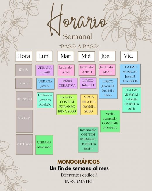 Segundo trimestre curso académico 2024-2025 !!!INFÓRMATE!!! Escuela de danza » PASO A PASO» C/ Regaliz, esq., C/Tejares. Edif. La Fuente 3, Local // Telf. de contacto 626224426